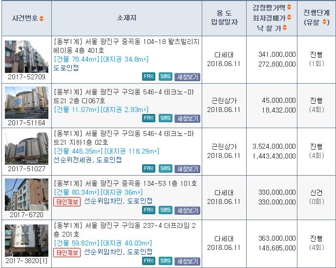 À̹ø ÁÖ ¼¿ï½Ã ±¤Áø±¸¿¡¼´Â ÃÑ 6°ÇÀÇ °æ¸Å°¡ ÁøÇàµÈ´Ù. ¹°°Ç ¿ëµµº°·Î´Â ´Ù¼¼´ëÁÖÅà 4°Ç, ±Ù¸°»ó°¡ 2°ÇÀÌ´Ù.