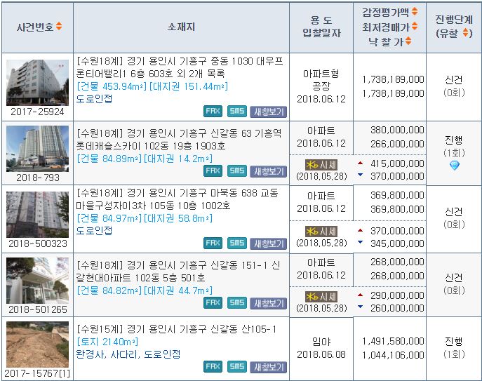 À̹ø ÁÖ °æ±âµµ ¿ëÀνà ±âÈﱸ¿¡¼´Â ÃÑ 16°ÇÀÇ °æ¸Å°¡ ÁøÇàµÈ´Ù. ¹°°Ç ¿ëµµº°·Î´Â ¾ÆÆÄÆ® 8°Ç, ´Ù¼¼´ëÁÖÅà 2°Ç, ´Üµ¶ÁÖÅà 1°Ç, ¼÷¹Ú½Ã¼³ 1°Ç, °øÀå 2°Ç, ÅäÁö 2°ÇÀÌ´Ù.